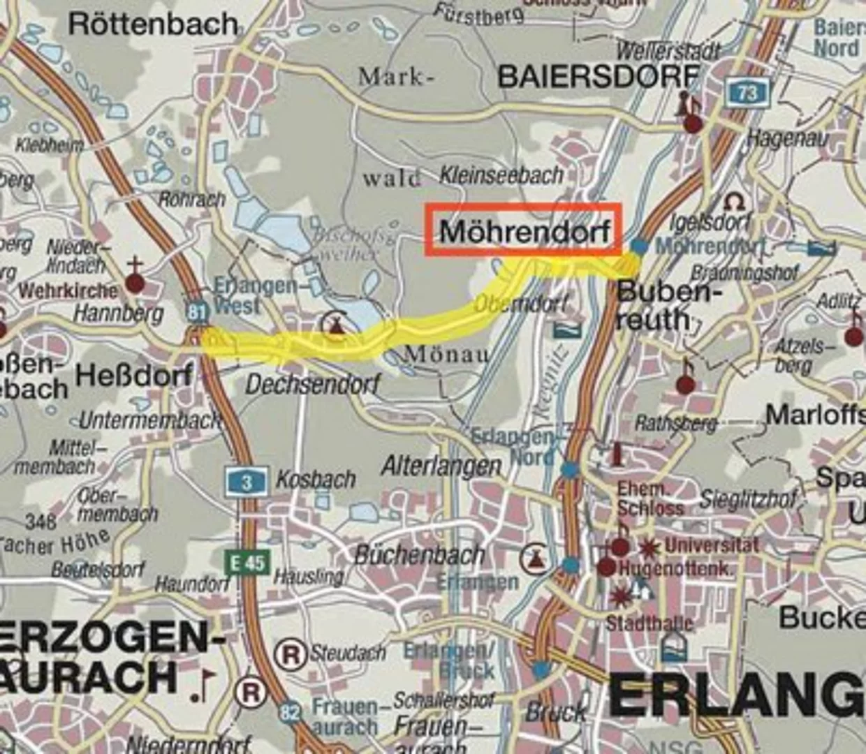 Möhrendorf liegt verkehrsgünstig in der Metropolregion Nürnberg und ist sowohl über die Autobahnen A3 und A73 als auch mit öffentlichen Verkehrsmitteln gut erreichbar, was eine schnelle Anbindung an umliegende Städte wie Erlangen ermöglicht.