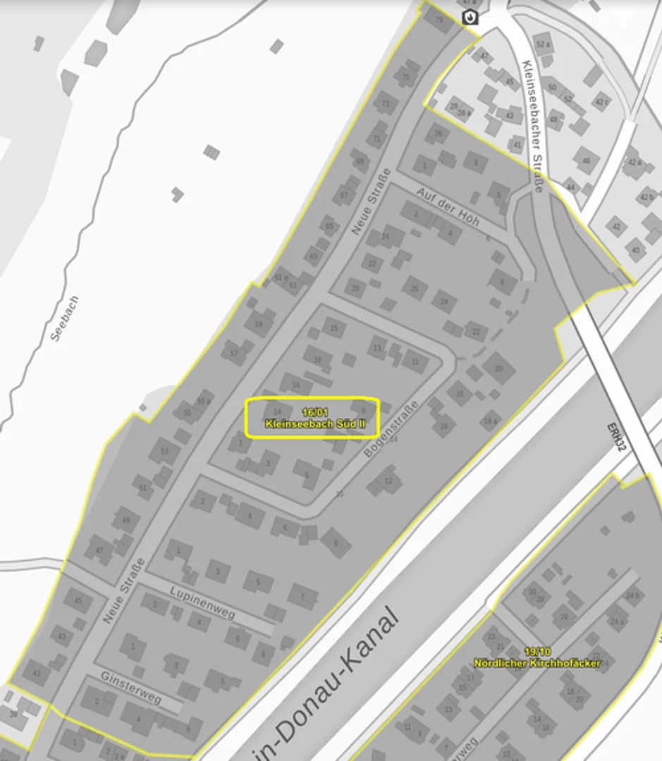 Der Bebauungsplan 16/1 Kleinseebach Süd II ist seit 2004 rechtskräftig. Es handelt sich hierbei um eine Überarbeitung des alten Bebauungsplanes aus den 70er Jahren. Die Grundstücke sind größtenteils bereits bebaut.
