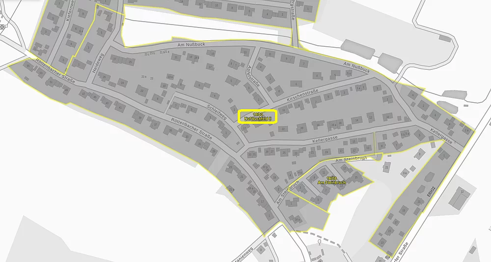 Hier finden Sie die jeweiligen rechtsverbindlichen Unterlagen zu den Bebauungsplänen 16/3 Nußbuckfeld II inkl. 1. Änderung.