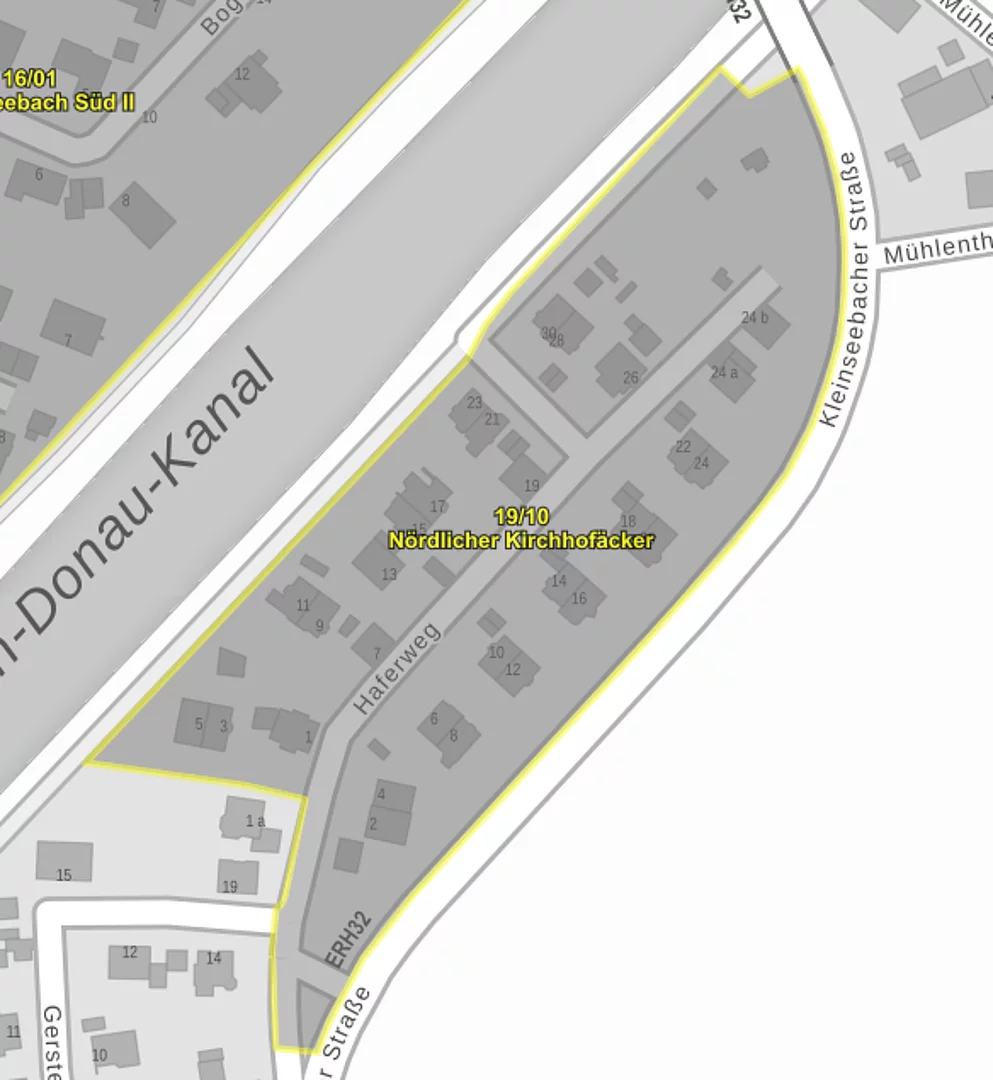 Der Bebauungsplan 19/10 Nördliche Kirchhofäcker (Haferweg) ist seit 1988 rechtskräftig.
