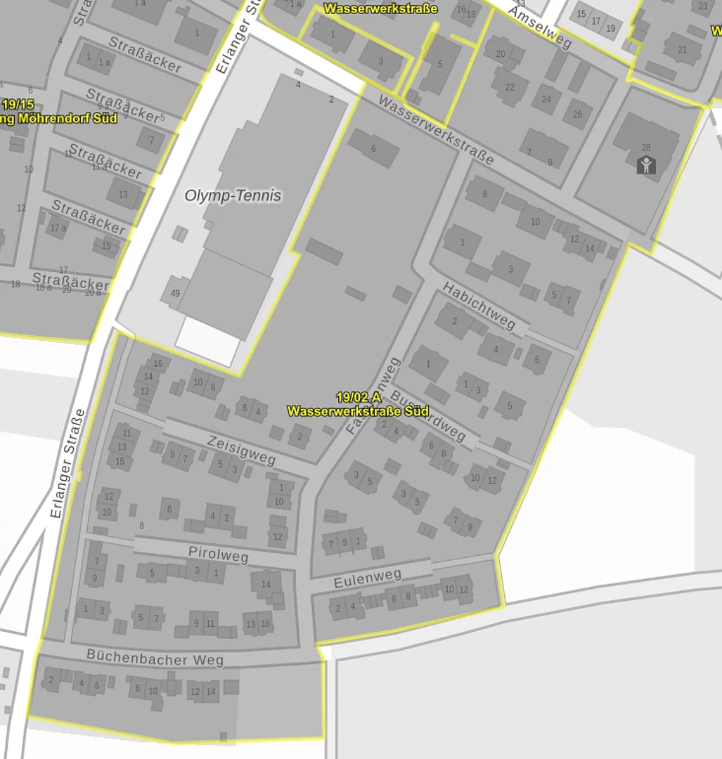 Hier finden Sie die jeweiligen rechtsverbindlichen Unterlagen zu den Bebauungsplänen 19/2 A Wasserwerkstraße Süd.