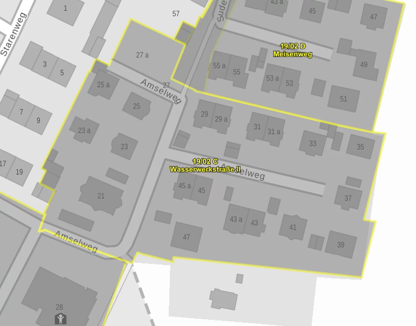 Der Bebauungsplan 19/2 C Wasserwerkstraße II ist seit 2002 rechtskräftig.