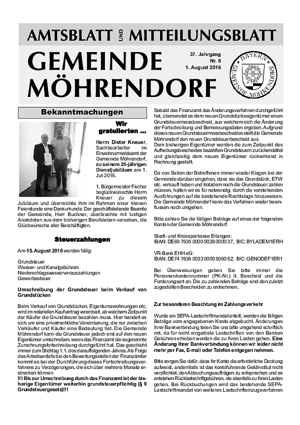 Ab Januar wird das bisherige Amts- und Mitteilungsblatt zum Info- und Mitteilungsblatt. Bis auf die Auslagerung der amtlichen Bekanntmachungen gibt es inhaltlich und an der monatlichen Erscheinungsweise keine Änderungen. Die amtlichen Bekanntmachungen erscheinen ab 01.01.2026 im neuen digitalen Amtsblatt.