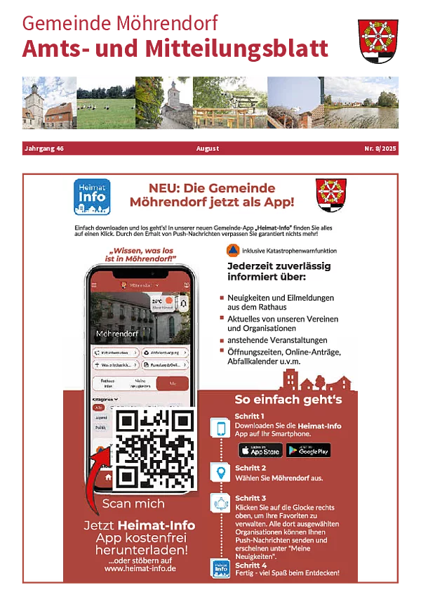 Ab Januar wird das bisherige Amts- und Mitteilungsblatt zum Info- und Mitteilungsblatt. Bis auf die Auslagerung der amtlichen Bekanntmachungen gibt es inhaltlich und an der monatlichen Erscheinungsweise keine Änderungen. Die amtlichen Bekanntmachungen erscheinen ab 01.01.2026 im neuen digitalen Amtsblatt.