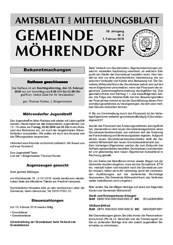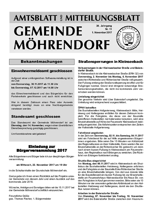 Ab Januar wird das bisherige Amts- und Mitteilungsblatt zum Info- und Mitteilungsblatt. Bis auf die Auslagerung der amtlichen Bekanntmachungen gibt es inhaltlich und an der monatlichen Erscheinungsweise keine Änderungen. Die amtlichen Bekanntmachungen erscheinen ab 01.01.2026 im neuen digitalen Amtsblatt.