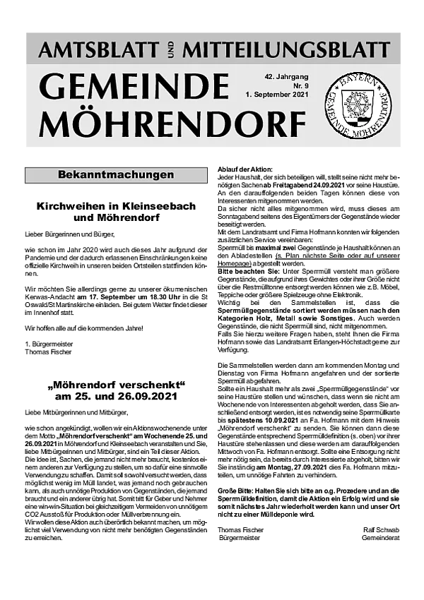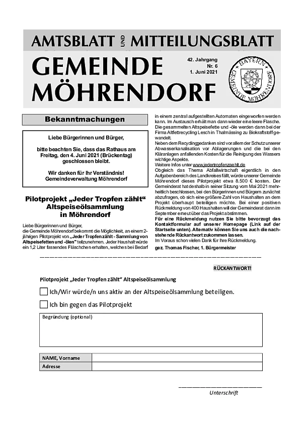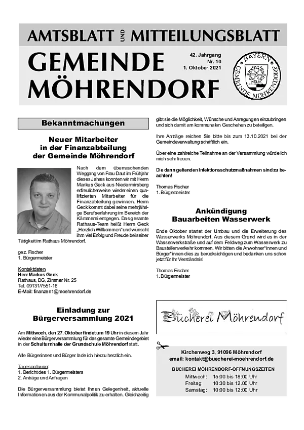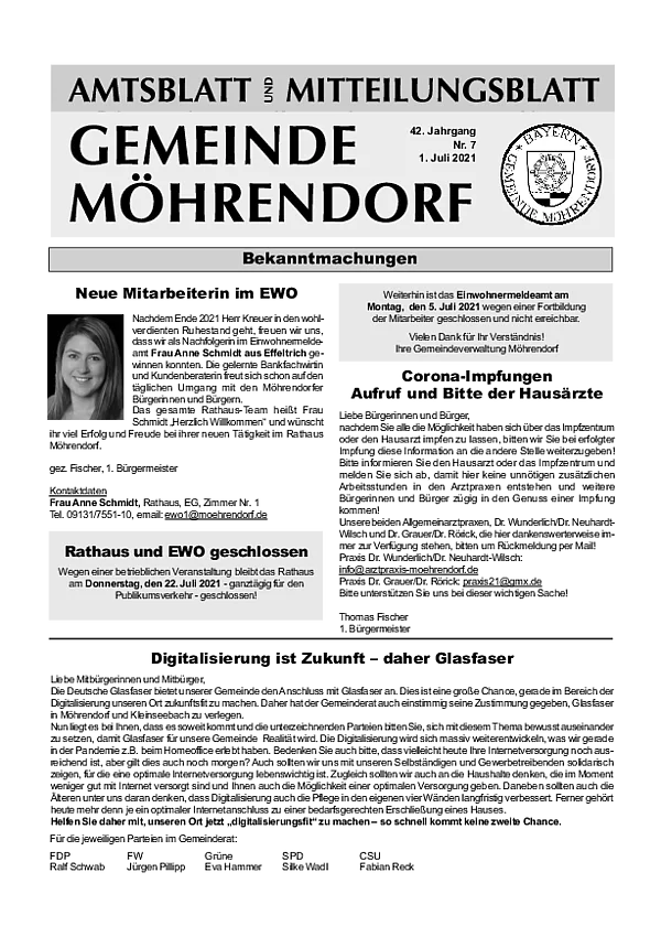 Ab Januar wird das bisherige Amts- und Mitteilungsblatt zum Info- und Mitteilungsblatt. Bis auf die Auslagerung der amtlichen Bekanntmachungen gibt es inhaltlich und an der monatlichen Erscheinungsweise keine Änderungen. Die amtlichen Bekanntmachungen erscheinen ab 01.01.2026 im neuen digitalen Amtsblatt.