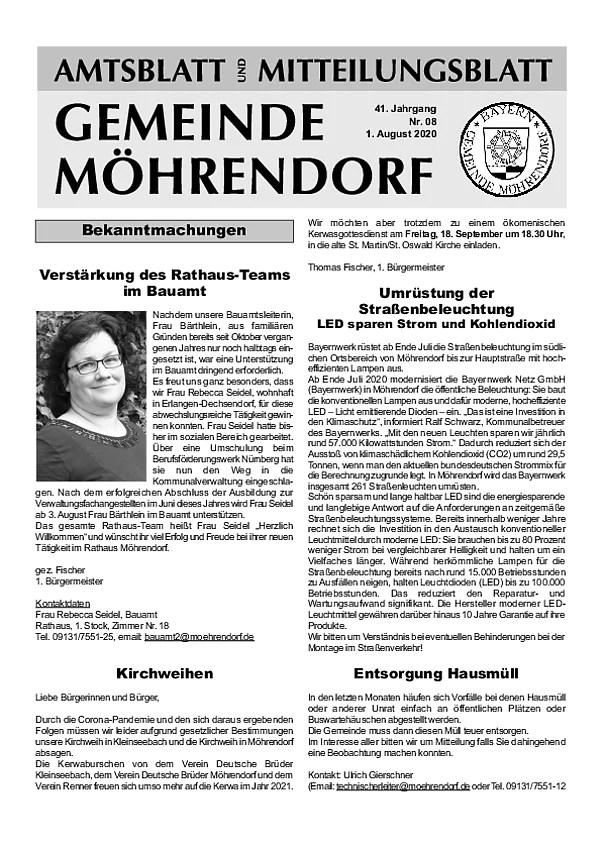 Ab Januar wird das bisherige Amts- und Mitteilungsblatt zum Info- und Mitteilungsblatt. Bis auf die Auslagerung der amtlichen Bekanntmachungen gibt es inhaltlich und an der monatlichen Erscheinungsweise keine Änderungen. Die amtlichen Bekanntmachungen erscheinen ab 01.01.2026 im neuen digitalen Amtsblatt.