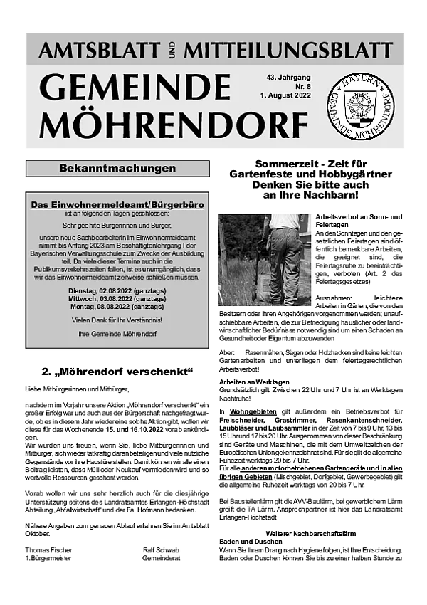 Ab Januar wird das bisherige Amts- und Mitteilungsblatt zum Info- und Mitteilungsblatt. Bis auf die Auslagerung der amtlichen Bekanntmachungen gibt es inhaltlich und an der monatlichen Erscheinungsweise keine Änderungen. Die amtlichen Bekanntmachungen erscheinen ab 01.01.2026 im neuen digitalen Amtsblatt.