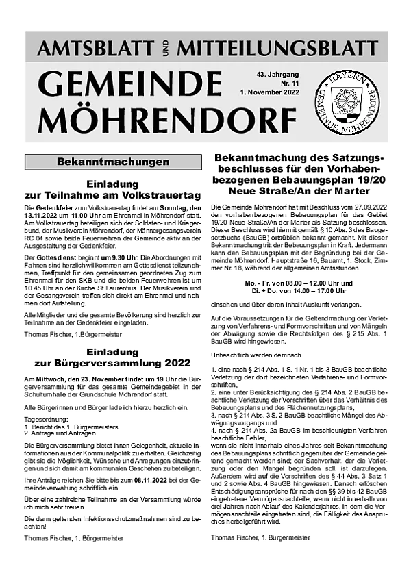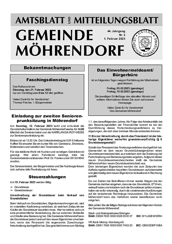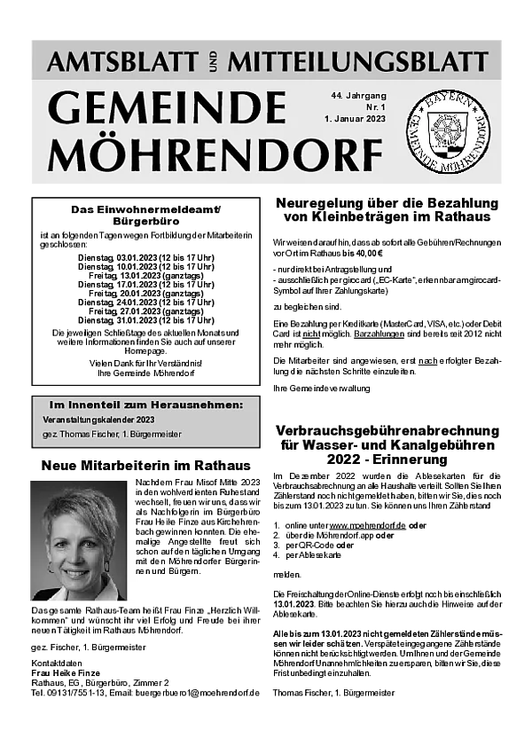 Ab Januar wird das bisherige Amts- und Mitteilungsblatt zum Info- und Mitteilungsblatt. Bis auf die Auslagerung der amtlichen Bekanntmachungen gibt es inhaltlich und an der monatlichen Erscheinungsweise keine Änderungen. Die amtlichen Bekanntmachungen erscheinen ab 01.01.2026 im neuen digitalen Amtsblatt.